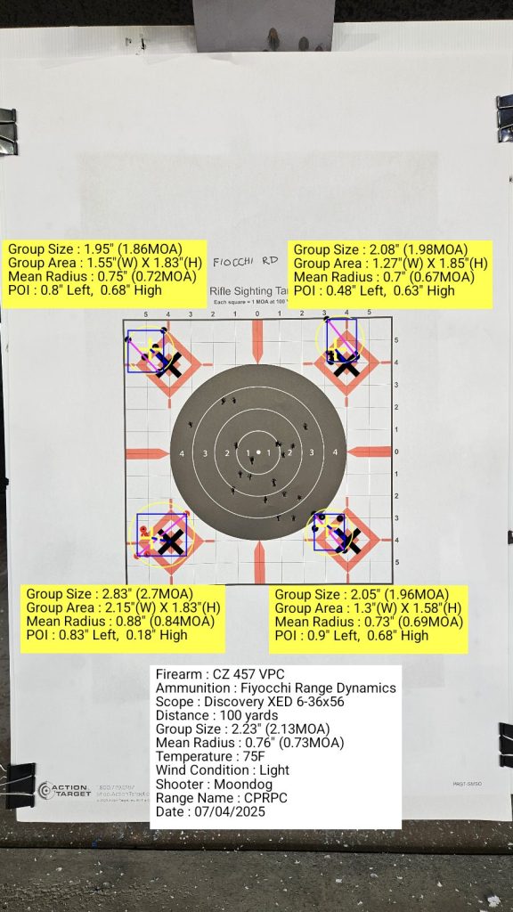 I’m testing several budget 22LR ammo vs CCI Standard velocity. CCI Standard is the go-to practice ammo for many competition bullseye pistol and 100-yard rimfire shooters. In this test, I compared it to Fiocchi Range Dynamic in my factory CZ457 Varmint Precision Chassis.