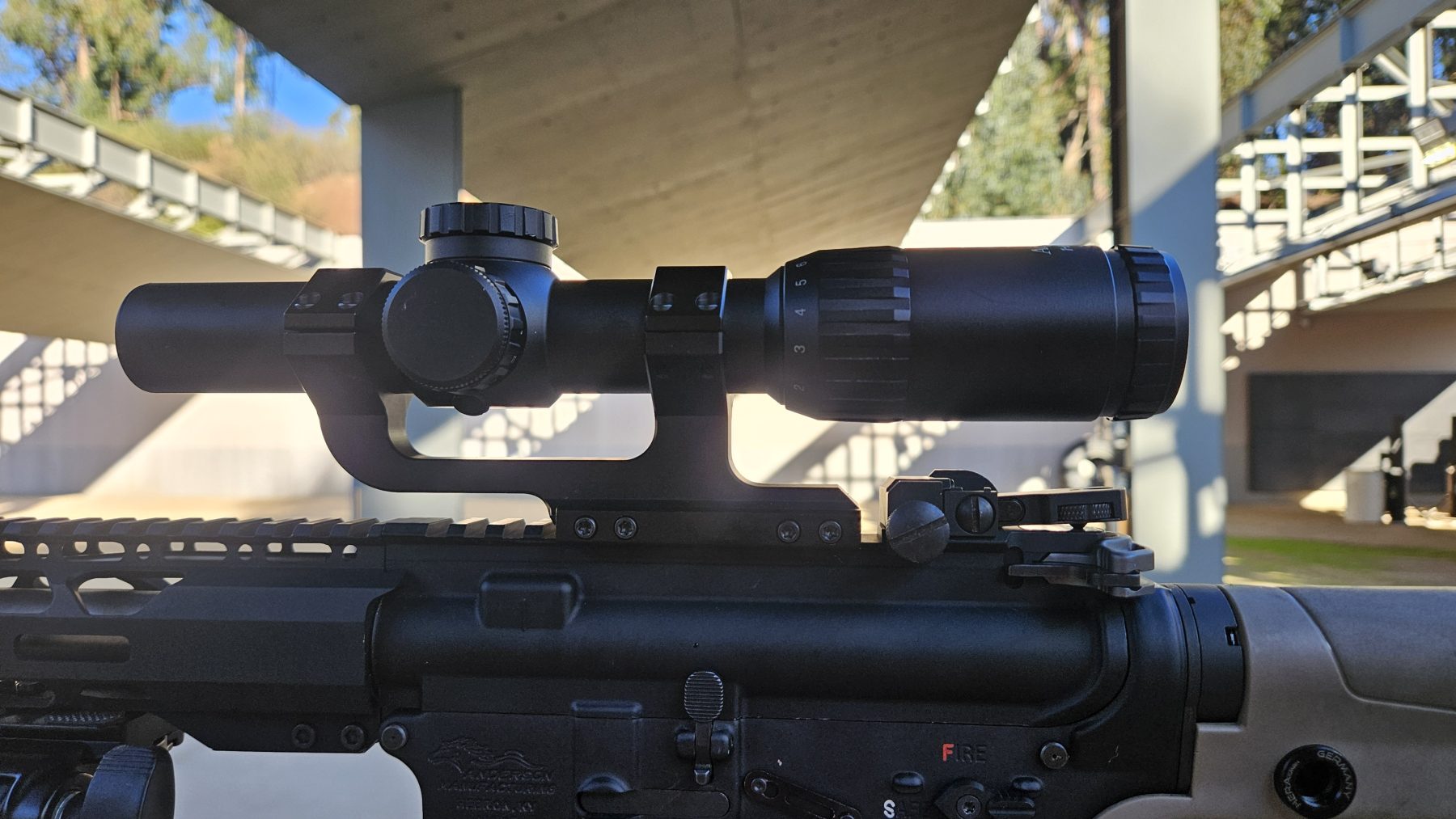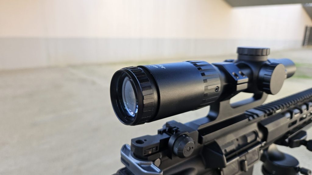 Optically, the glass was pretty mid-to-unremarkable, exhibiting a slightly distorted feel when scanning around at 1x. illuminated reticle. Its eyebox was a little tight, and brightness and color accuracy were slightly less than average. Despite noticeable chromatic aberration, the scope offered surprisingly sharp images for a budget LPVO and a daylight-bright reticle.