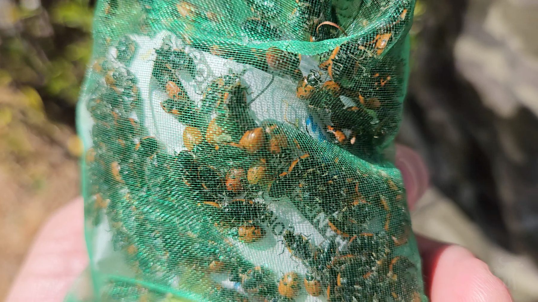The next day, I checked on the bush and was disappointed to find that only a small fraction of the ladybugs were around from the previous day. Some must have flown away; perhaps some were eaten by birds or predators? In any case, a few days later I could barely find one ladybug left on the bush and there were still aphids.