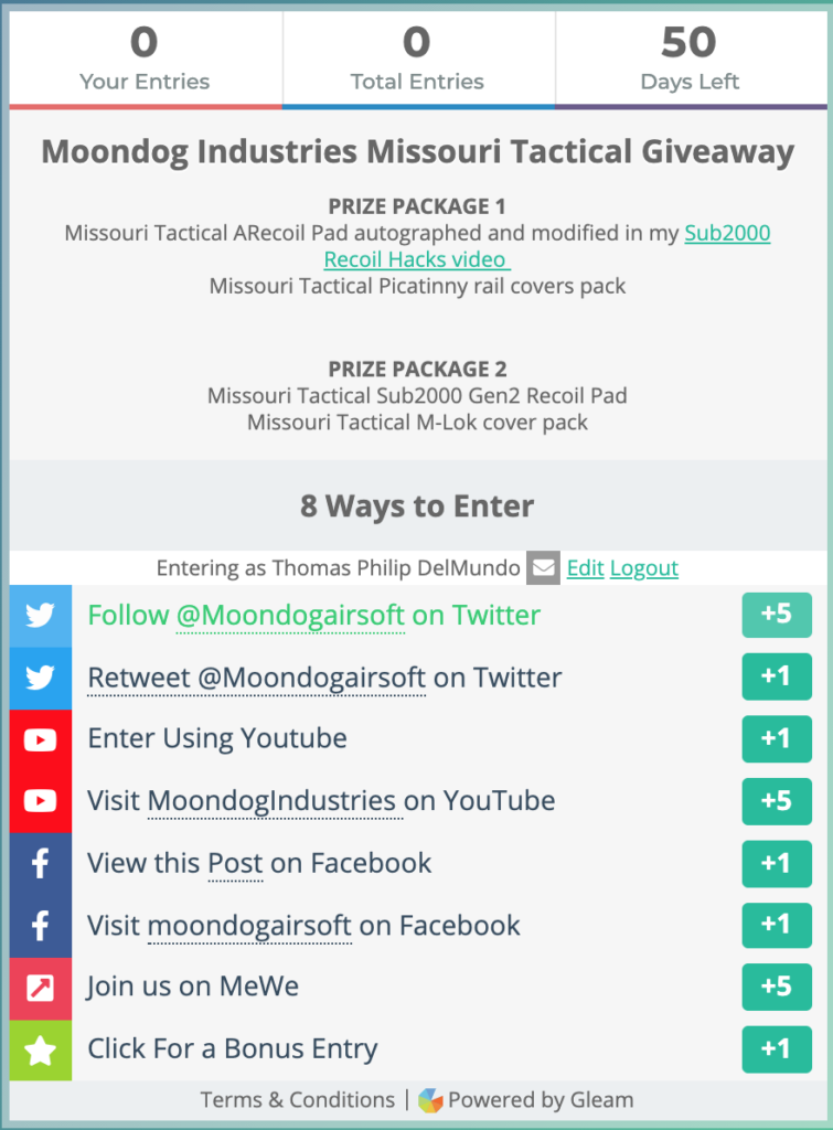 I’ll be giving away two prize packages from Missouri Tactical. I ended up with two extra sets of rail covers after completing my review video of MoTac’s rail covers and I wanted to give them away to my viewers as a thank you for watching my YouTube reviews.